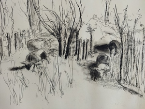 2025schapen onder de wilgen, vlotte schets naar de waarneming