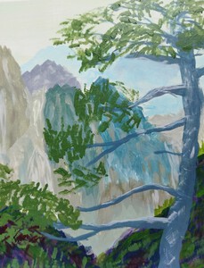 2017Noors landschap met fjord uitgedrukt in expressieveschilderstijl en felle kleuren